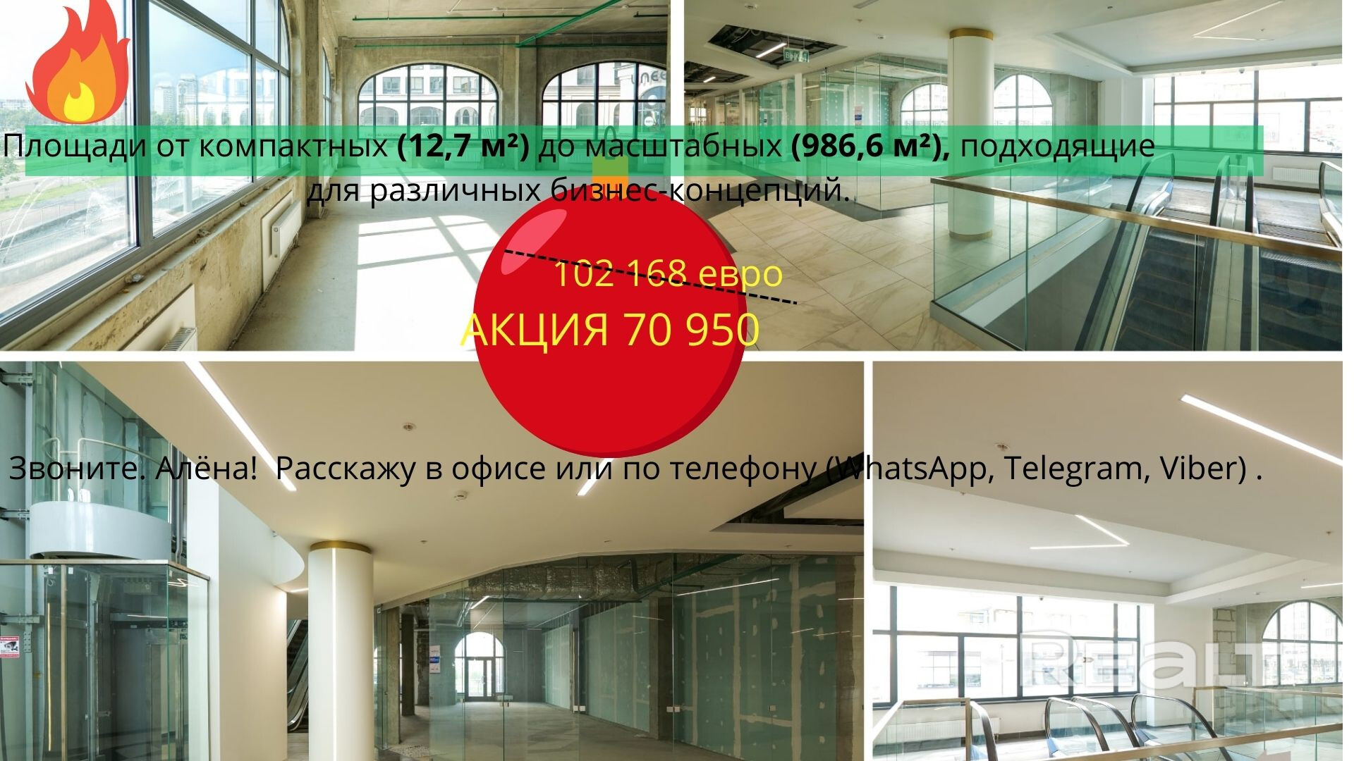 Метраж: Доступны площади от компактных (12,7 м2) до масштабных (986,6 м2), подходящие для различных бизнес-концепций.