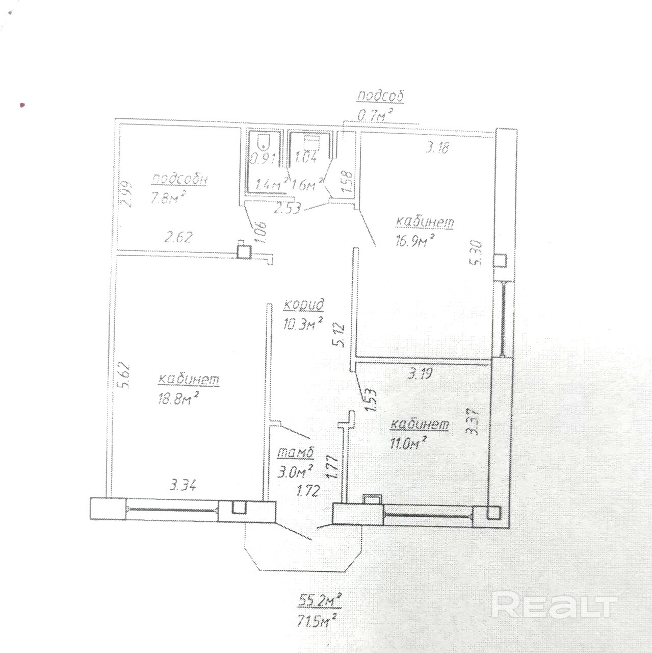 Административное помещение общей площадью - 71,5 м2, располагается на 1-м этаже с отдельным входом.