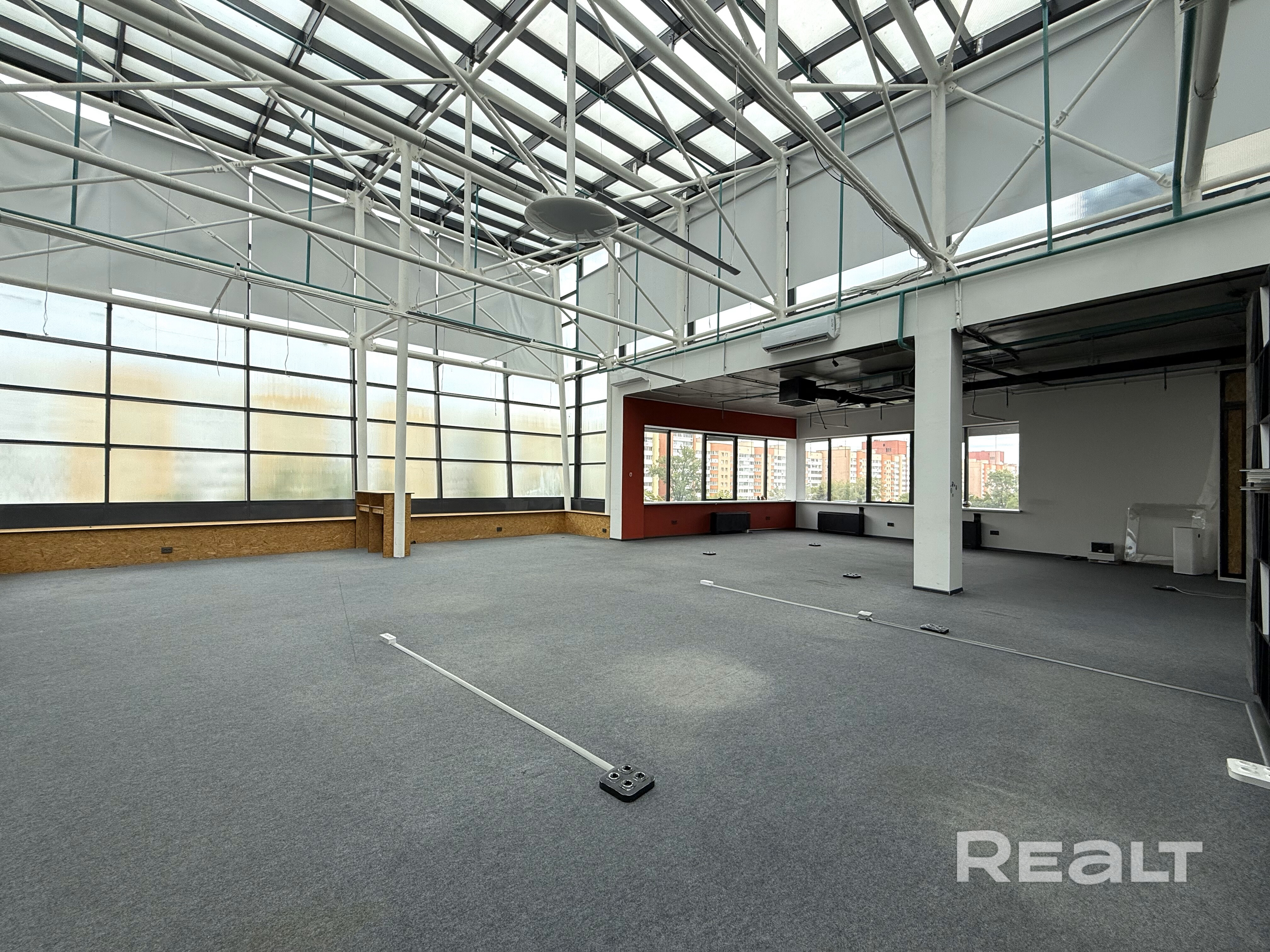 Просторное помещение правильной формы, есть два помещения, отделенные перегородками (могут быть использованы, как закрытые кабинеты, кухня или переговорная). Без подвода воды.