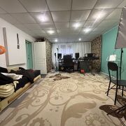 -Большая комната с окнами площадью 34,4м2 (7,69м х 4,47м).