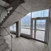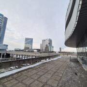 Помещение располагается на 2-м этаже и имеет два отдельных собственных входа с 1-го этажа пешеходного стилобата, который соединяет "первую линию" жилой застройки на проспекте Победителей в микрорайоне "Лебяжий".