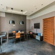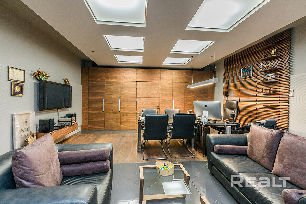 В помещении - очень хороший дизайнерский ремонт, выполненный из высококачественных импортных материалов. Встроенная мебель.