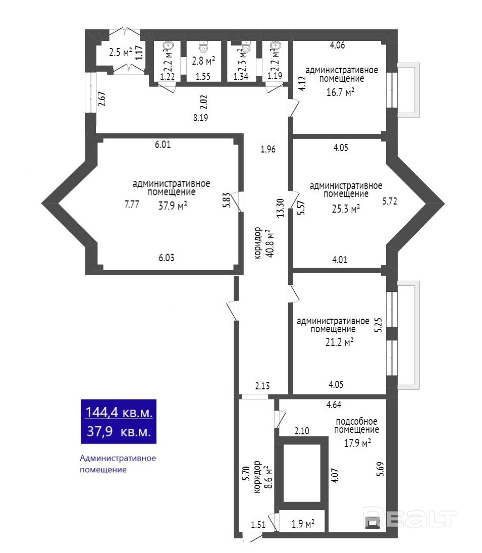 Возможно также продажа 5-го кабинета 52,2 м2 (итого 234,5 м2).
