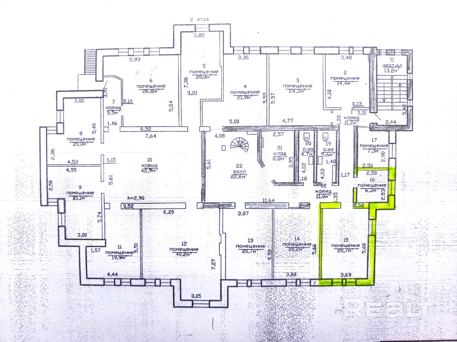 Продается часть 2-го этажа с двумя изолированными помещениями и местами общего пользования.