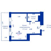 - Площадь: Общая — 42.3 кв.м., нормируемая — 27.5 кв.м. Максимум полезного пространства.