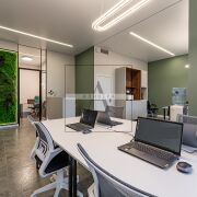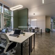 Помещение находится на 1-м этаже со своим собственным входом с улицы. Сделан дизайнерский ремонт с использованием материалов премиум качества. Панорамное остекление в пол, высота помещения - 3,46 м. Помещение используется под офис, который включает в свой состав: - общий зал + зона ресепшен; - переговорная комната; - кабинет руководителя (иного сотрудника); - собственный санузел. Помещение полностью обустроено всем необходимым для деятельности современного офиса.