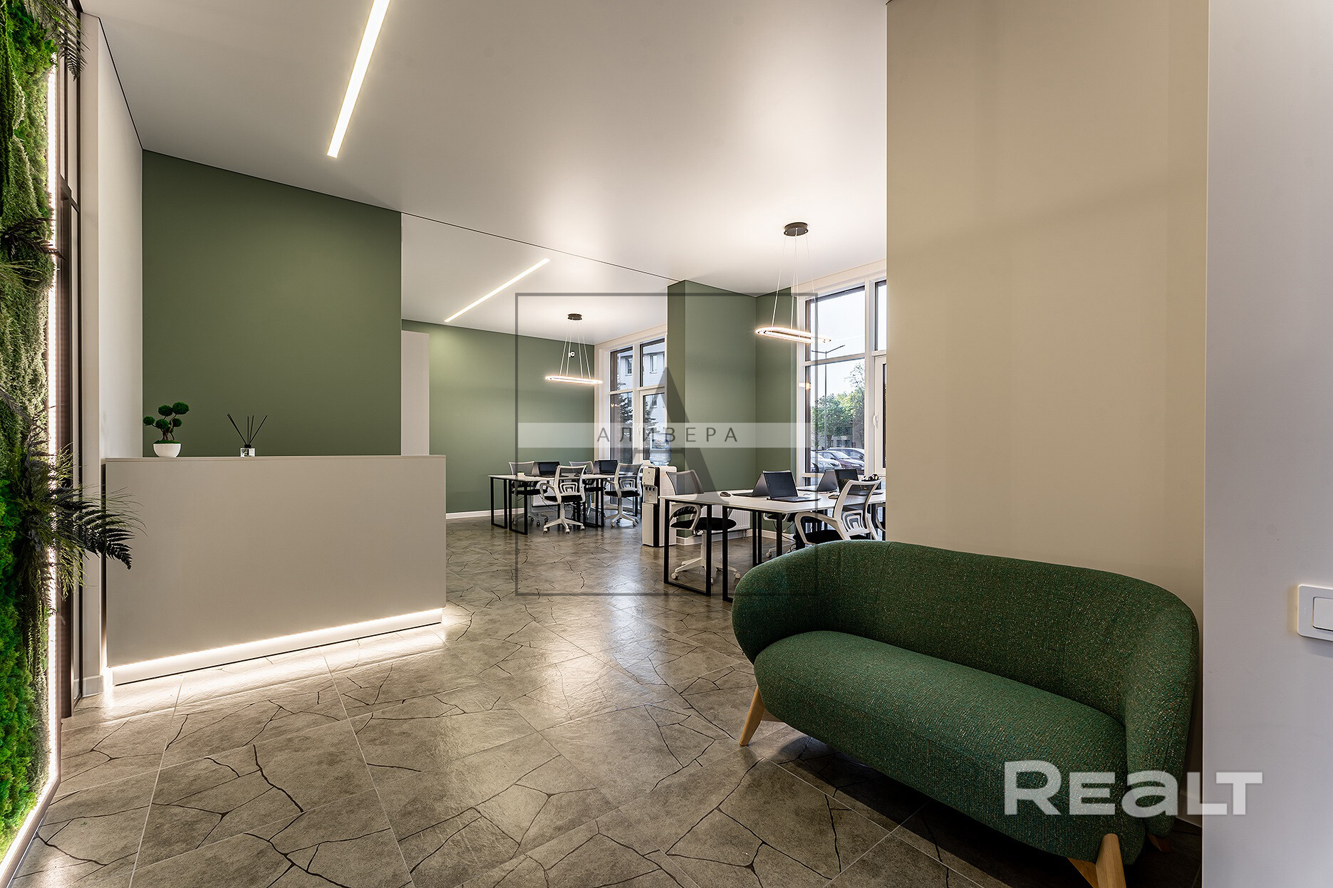 - общий зал + зона ресепшен;