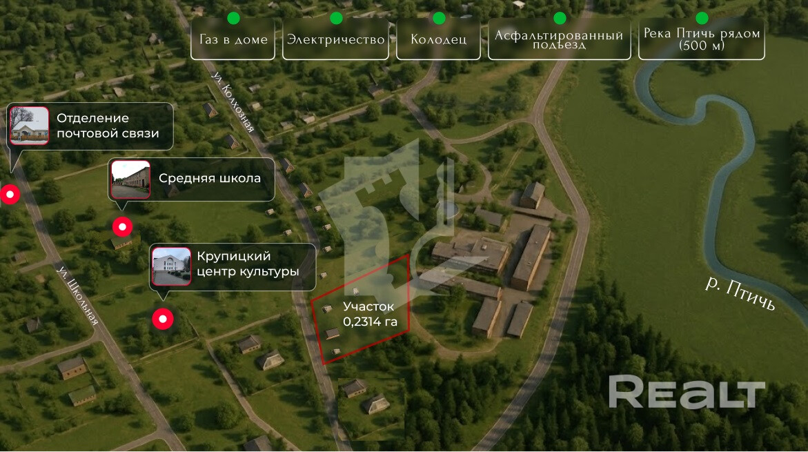 · Отдых для души: А после работы — всего несколько минут, и вы на берегу реки Птичь или на тропинке Кайковского заказника. Ваш личный курорт для вечерних прогулок и выходных. Чистый воздух и тишина — не привилегия, а норма.