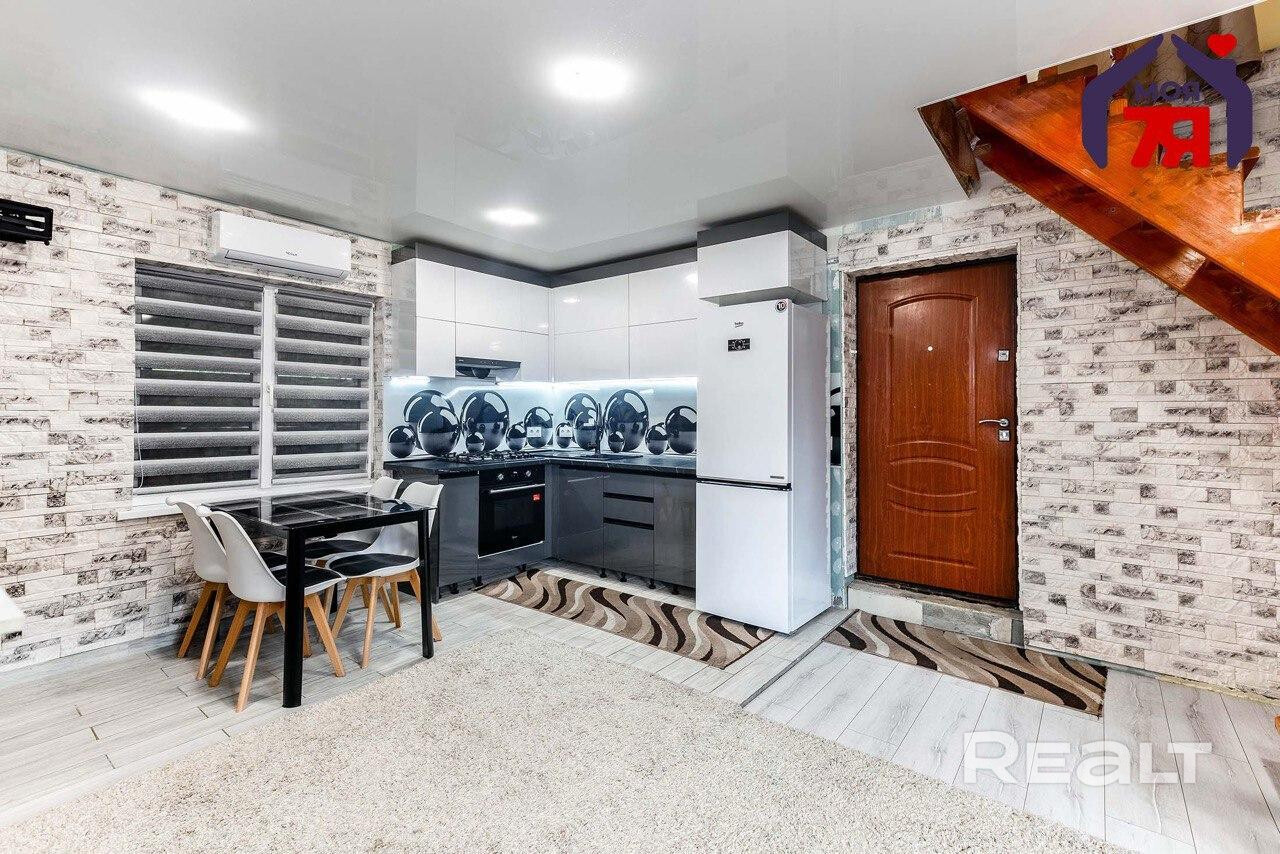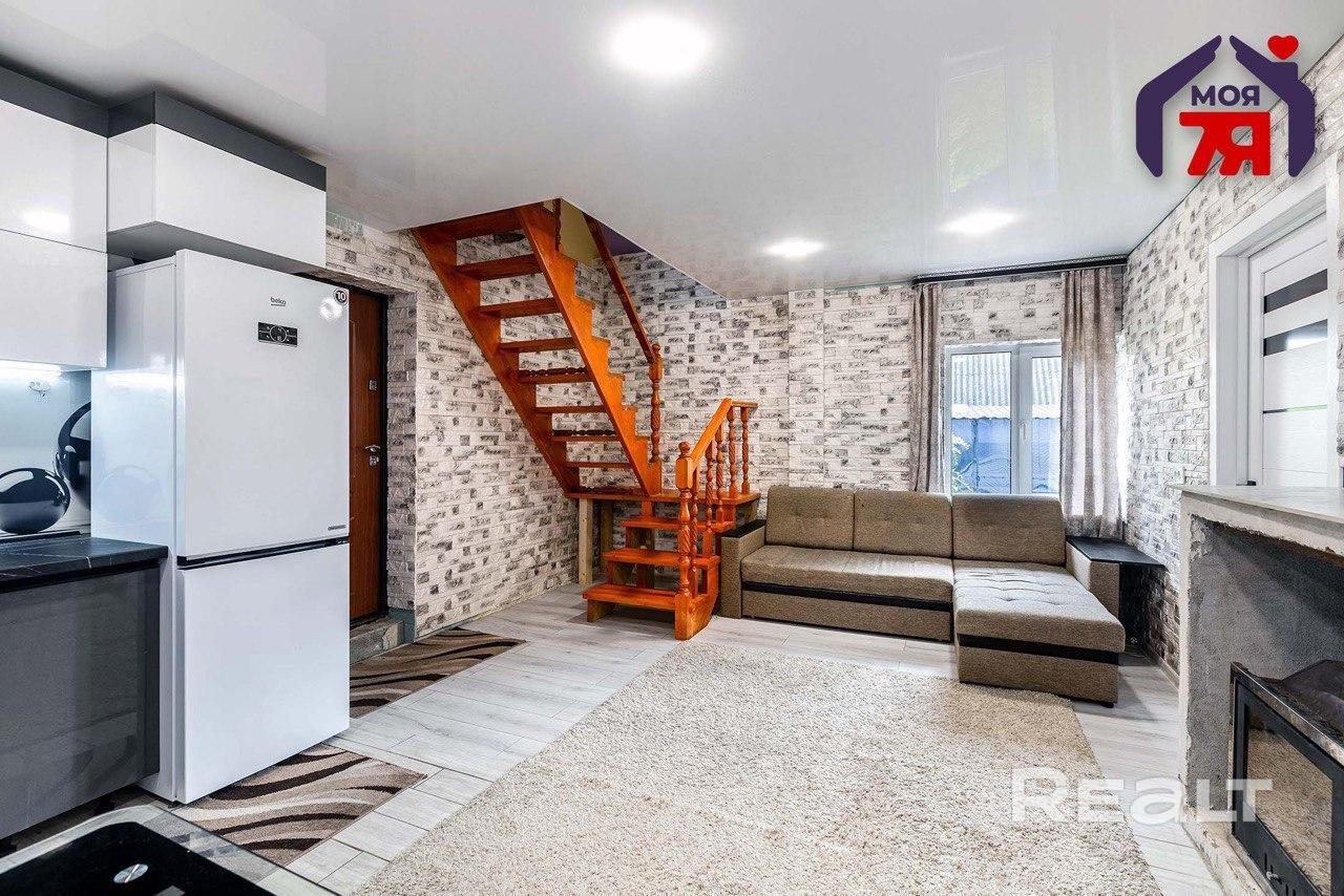 - Просторный бревенчатый двухуровневый дом общей площадью 95 кв.м., облицованный декоративным кирпичом, прекрасно подходит для круглогодичного проживания. Основа из дерева создаёт уют и здоровый микроклимат, облицовка придаёт эстетичный внешний вид и дополнительную защиту.
