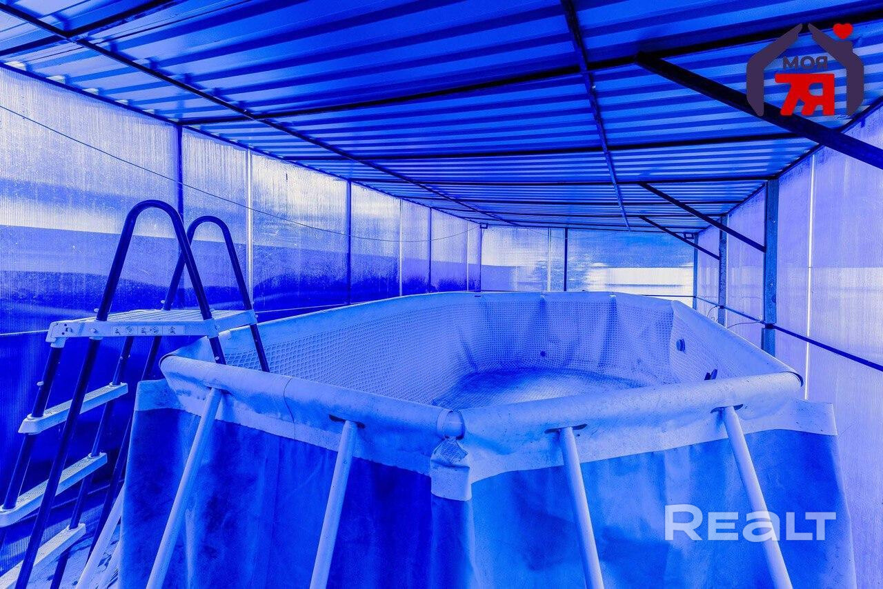 - Участок площадью 5 соток благоустроен и располагает всем для отдыха: баня для расслабления и восстановления сил, закрытый поликарбонатный бассейн для купания в любую погоду. Территория ухожена и готова к использованию.