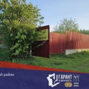 Участок огорожен забором из металлического профиля, обеспечивающим безопасность и приватность.