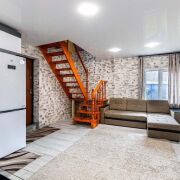 - Просторный бревенчатый двухуровневый дом общей площадью 95 кв.м., облицованный декоративным кирпичом, прекрасно подходит для круглогодичного проживания. Основа из дерева создаёт уют и здоровый микроклимат, облицовка придаёт эстетичный внешний вид и дополнительную защиту.