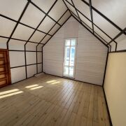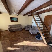 Первый этаж – кухня-гостинная, что бы Вы смогли не только там приготовить еду, но и устраивать семейные обеды и ужины, а так же отдохнуть от летней жары. Второй этаж – одна просторная светлая комната, кладовая, балкон с прекрасным видом на лес.