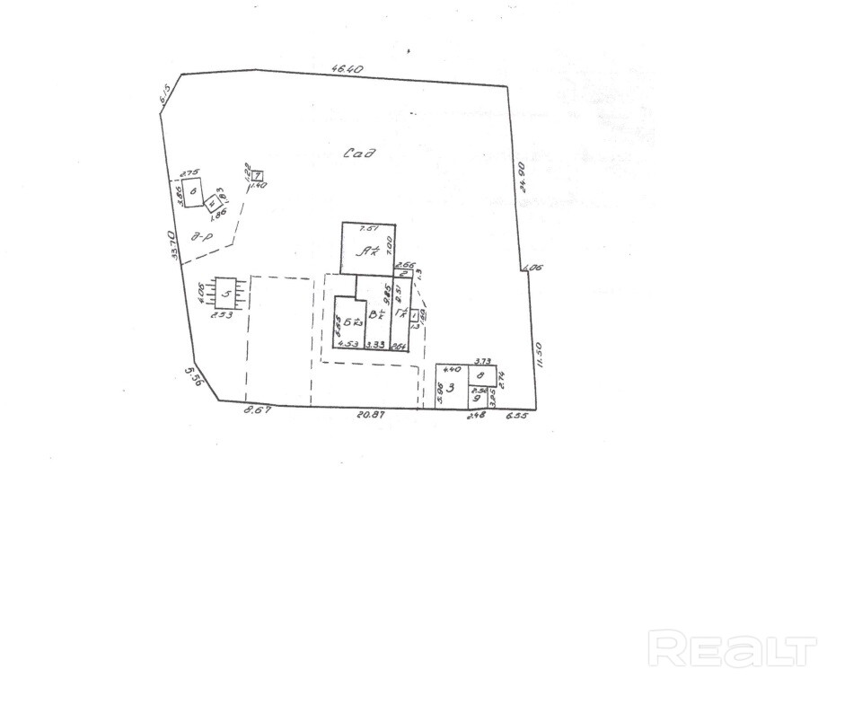 Большой участок (20 соток), прямоугольный участок 15 соток для строительства и обслуживания дома с прилегающим участком 5 соток под сад-огород. По плану на участке дом из двух квартир, гараж и сарай. Все строения требуют реконструкции.