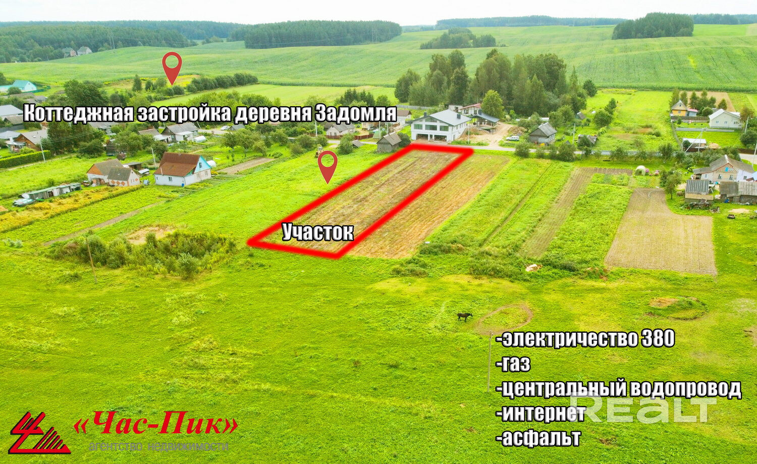 Жилая коттеджная застройка(ИЖС); свет 380; газ, центральный водопровод, интернет; асфальт; лес; водоём; целевое назначение участка - для строительства и обслуживания жилого дома; частная собственность на земельный участок; транспортное сообщение, остановка маршрутного такси; инфраструктура на доступном расстоянии: магазин, школа, детский сад; удобный подъезд; одно из лучших мест в пригороде Минска для строительства загородного дома; очистка дорог от снега зимой; все документы к продаже в соответствии с действующим законодательством РБ; фото с участка!