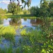Участок размером 0.23 га в окружении леса с электричеством и колодцем. Возле участка есть родник, с чистейшей водой, из которого течет ручей в свою сажалку, где можно ловить рыбу. Дом стоит обособленно от деревни на расстоянии более 300м, есть собственная дорога через перелесок к своему участку. Вокруг богатые охотничьи угодья. Есть возможность и разрешение на получение земли в 3.3 га в аренду под ведение крестьянско-фермерского хозяйства. Не далеко располагаются несколько магазинов и медицинский пункт.