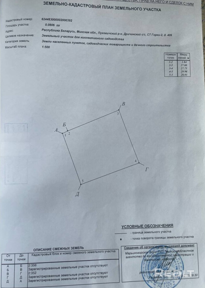 Адрес: Республика Беларусь, Минская обл., Пуховичский р‑н, Дричинский сельсовет, СТ «Горки‑2», д. 409.