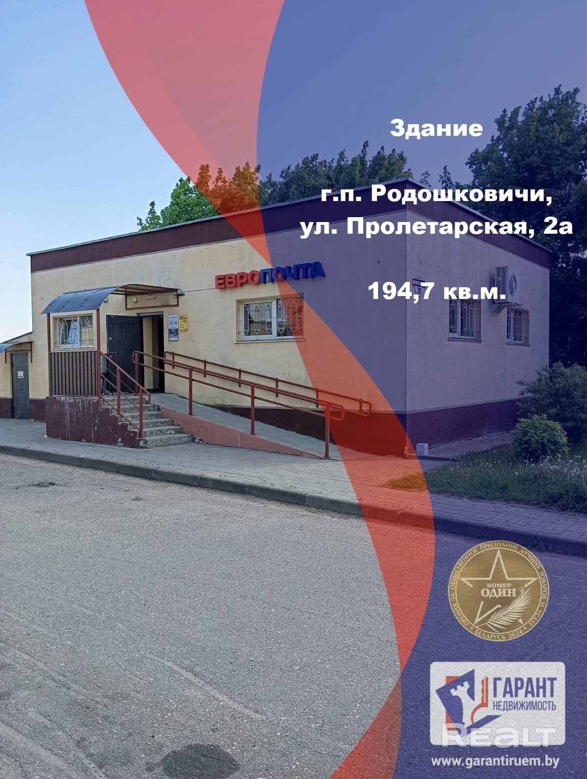 Продаётся отдельно стоящее здание по адресу: г.п. Радошковичи, ул. Пролетарская, 2а. Здание расположено в проходном месте и имеет общую площадь 194,7 кв.м. На первом этаже находятся торговые залы, а подвал можно использовать в качестве склада. Здание имеет два входа и может быть использовано как торговое помещение, общепит, офис, склад, сферы услуг.