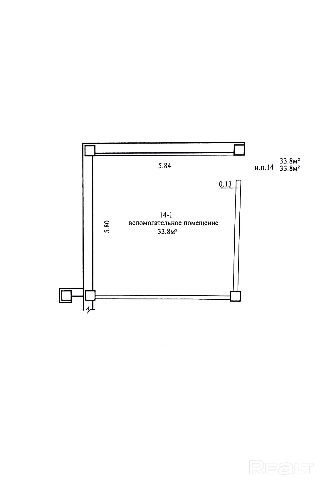 Помещение площадью 33.8 кв.м., расположенное на 1-ом этаже