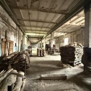 Находится от города в лесном массиве.Отдельный въезд,охраняемая территория,огорожено забором. Подойдет под любое производство.