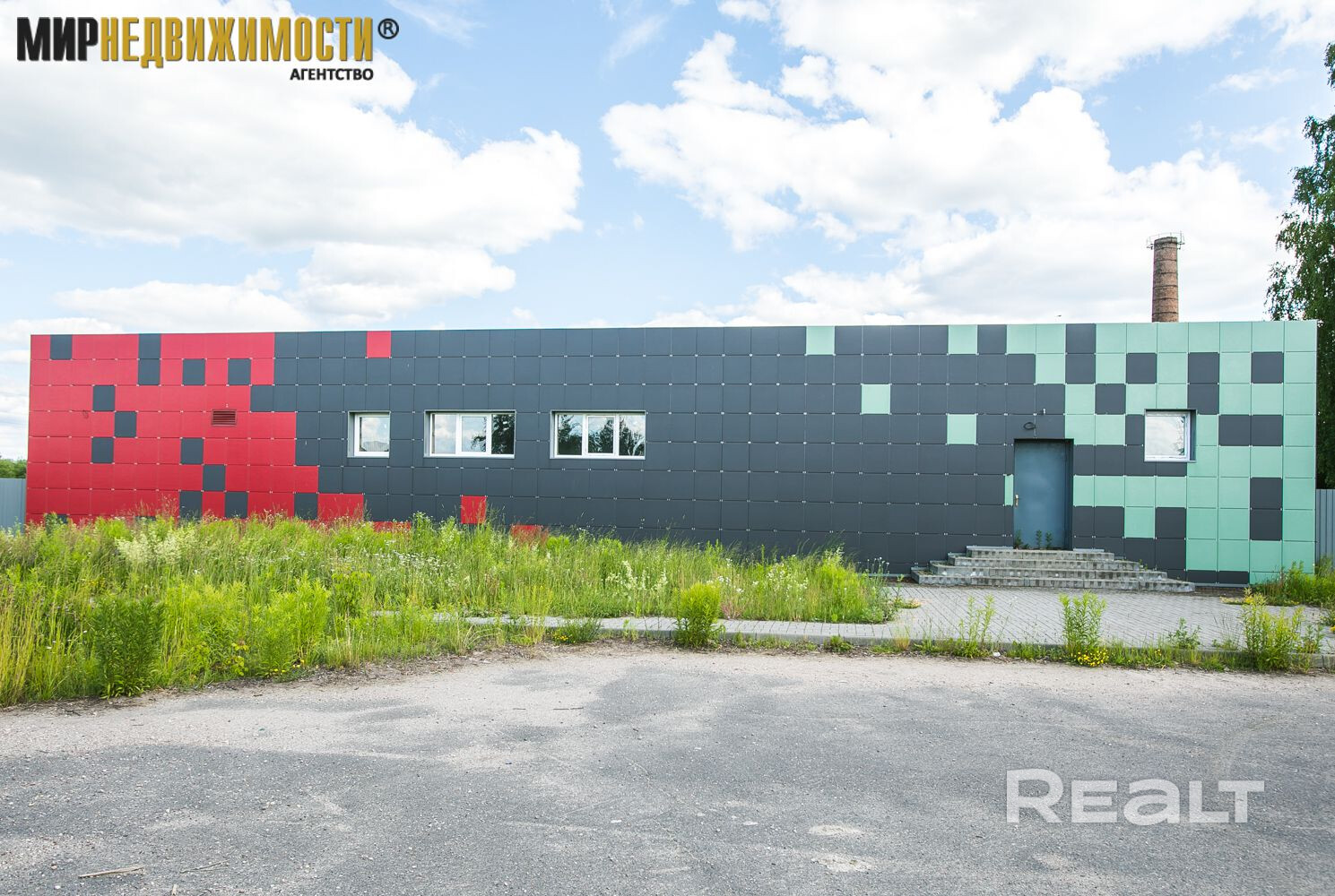 Здание одноэтажное, облицован керамо-гранитом (вент фасад). Оборудовано много помещений, холодильные камеры, складские, производственные помещения. Внутри здания проложены коммуникации. Удобное расположение, хорошие подъездные пути, асфальтная дорога, огороженная собственная территория с воротами для заезда. Оживлённая деревня.