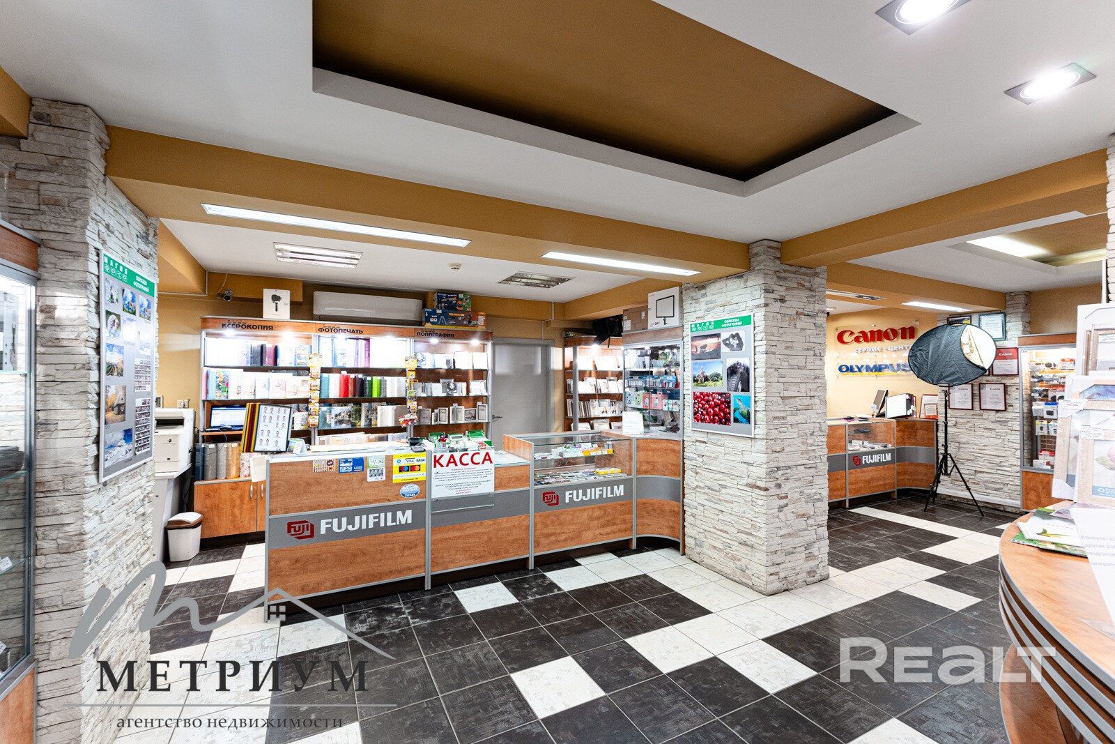 Объект находится в центре города возле ТЦ ЦУМ, в шаговой доступности от станции метро Якуба Коласа. Помещение из из двух этажей - первый этаж (123м2) расположен на уровне улицы, а второй этаж (83м2) находится в цоколе. Входы в помещение есть и с переднего фасада, и с дворового - всего три отдельных входа.