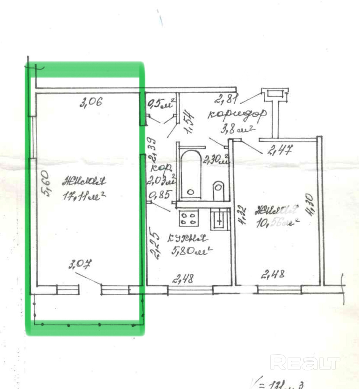 17.11 м²