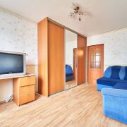 Коридор 9.5 м2 позволит разместить в нем несколько встроенных шкафов для ваших вещей и комодов для обуви. На полу линолеум, стены и потолок оклеены обоями.
