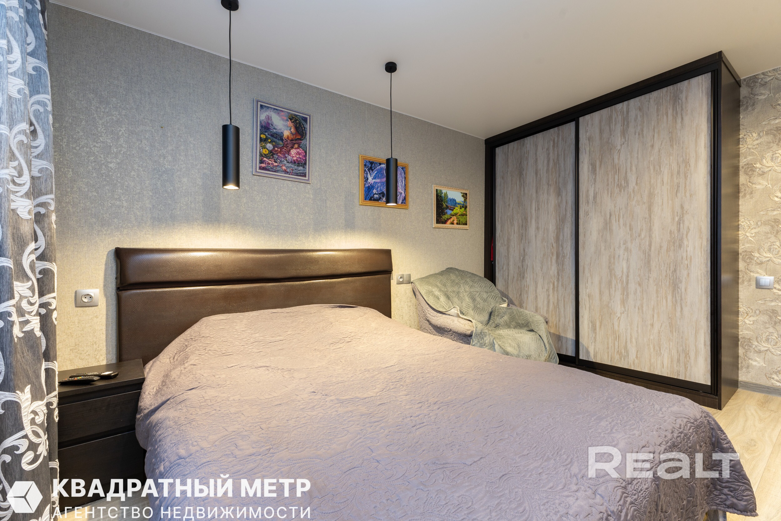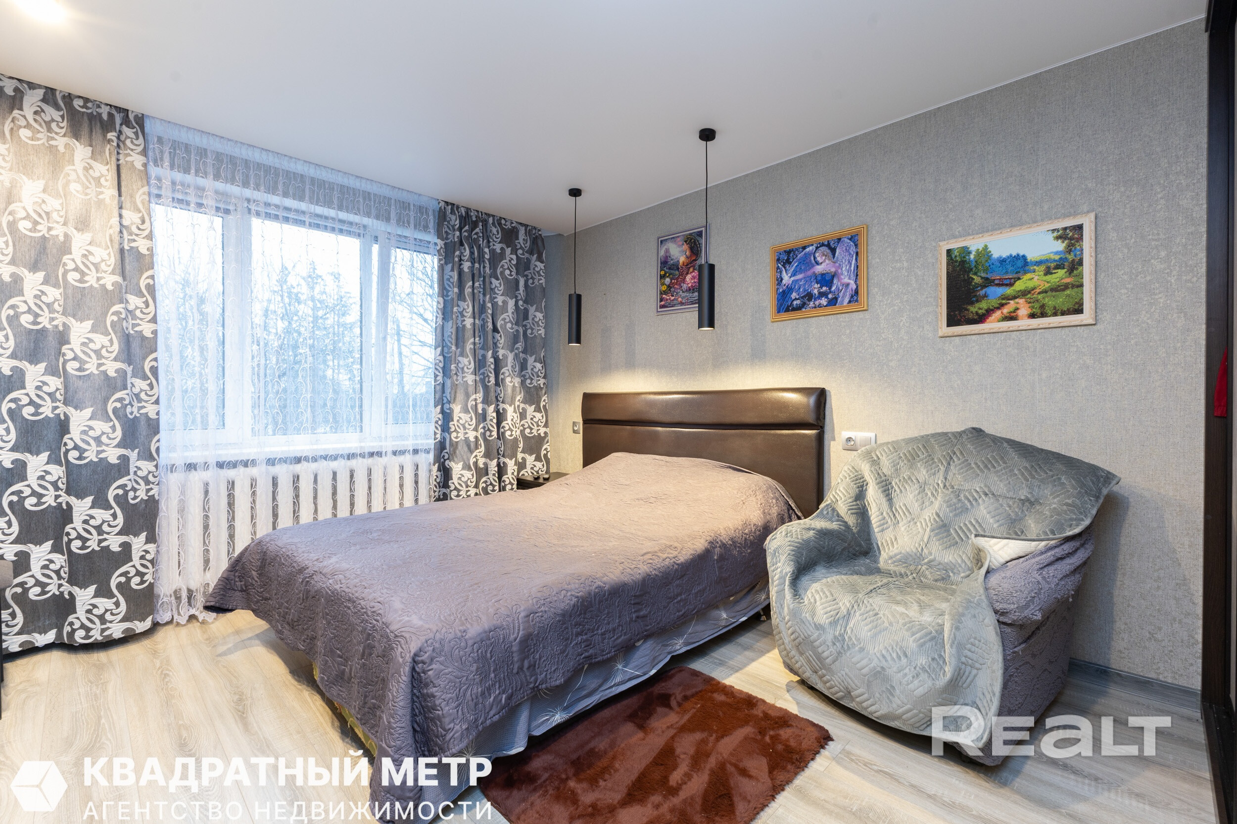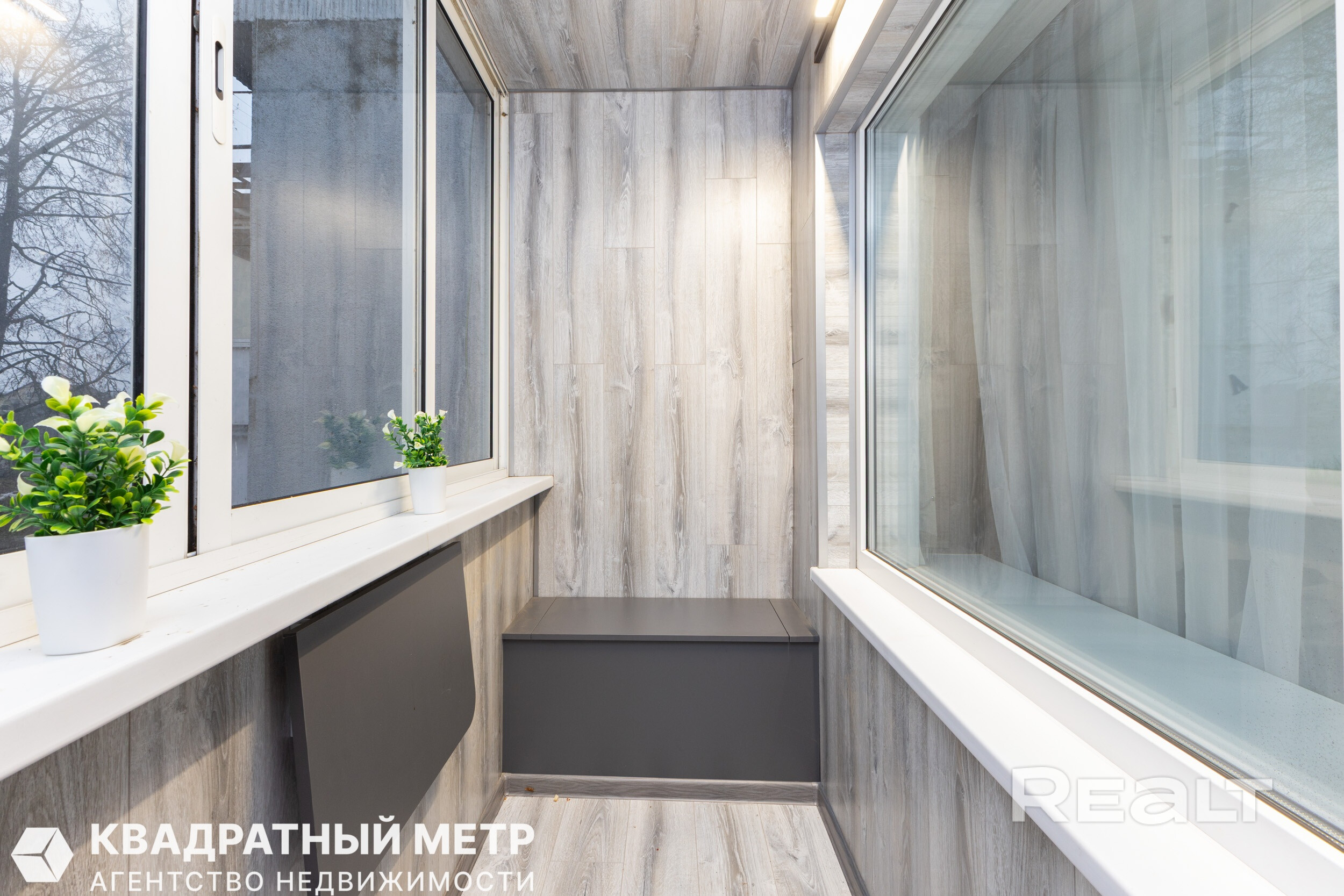 В комнатах выполнен качественный современный ремонт, установлен просторный шкаф, на полу уложен ламинат, окна ПВХ и вход на просторную лоджию (3,2 м кв) с видом на зеленую зону двора.