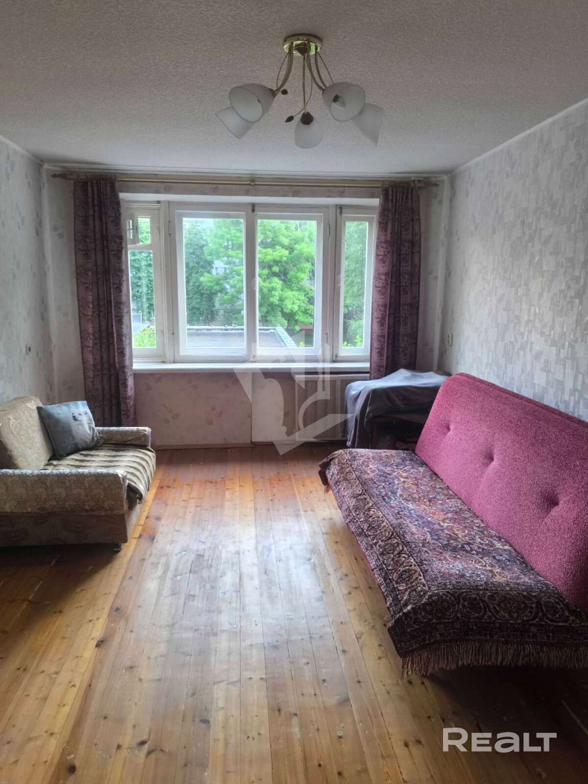 Комната просторная, с большим 4-створчатым окном.