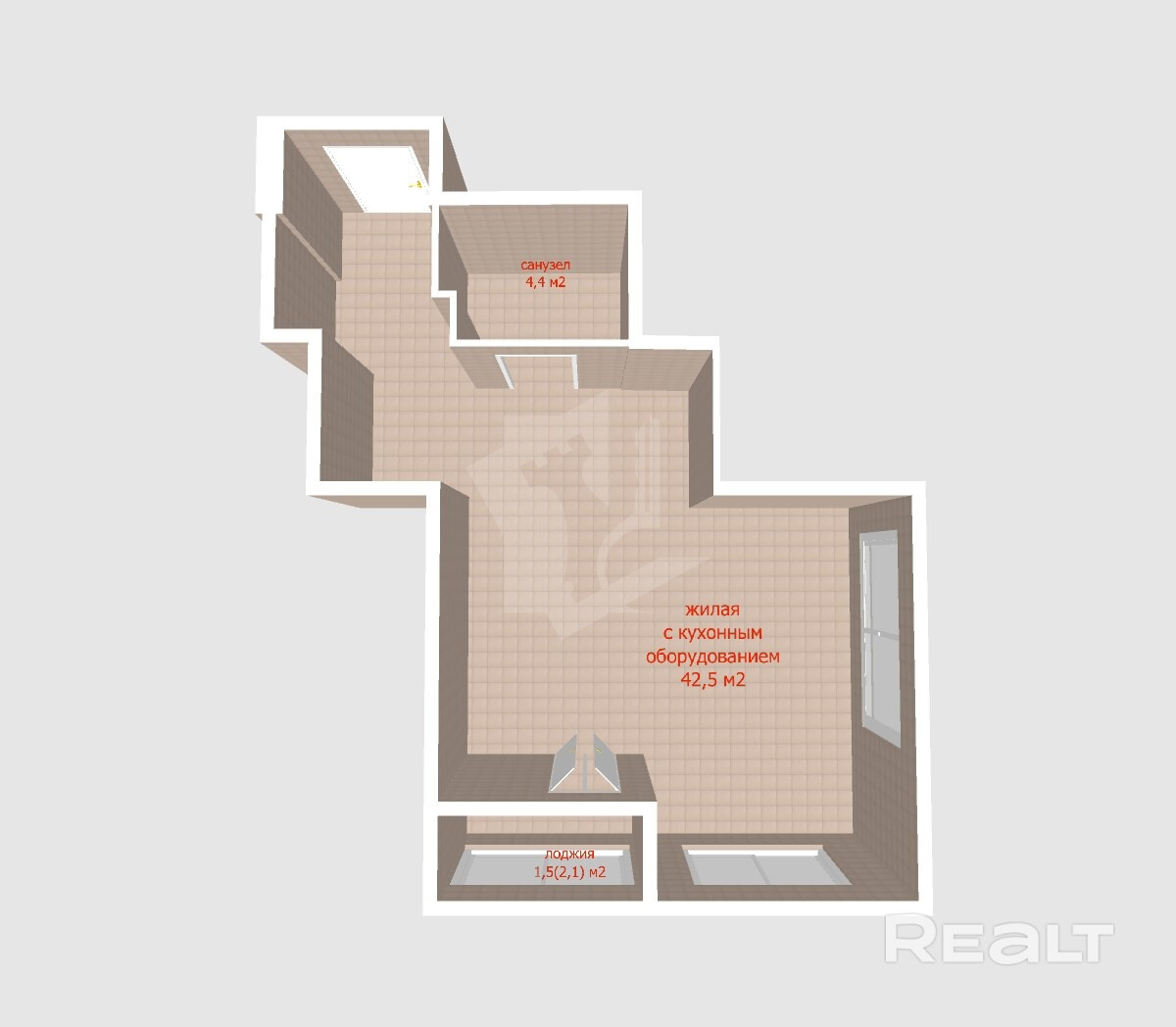 · Очень просторная площадь квартиры, площадь жилой комнаты с кухонным оборудованием более 40 м2;
