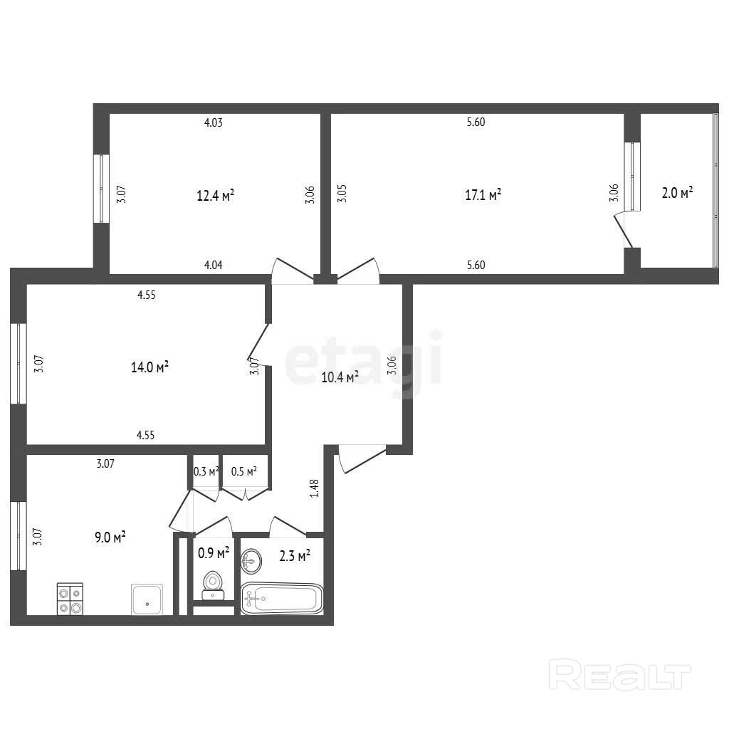 Комнаты 17,1 м2 и 12,4 м2, светлые и ухоженные, со свежим аккуратным ремонтом. Нейтральные спокойные тона, современные обои, качественный ламинат — можно заехать и жить без дополнительных вложений.