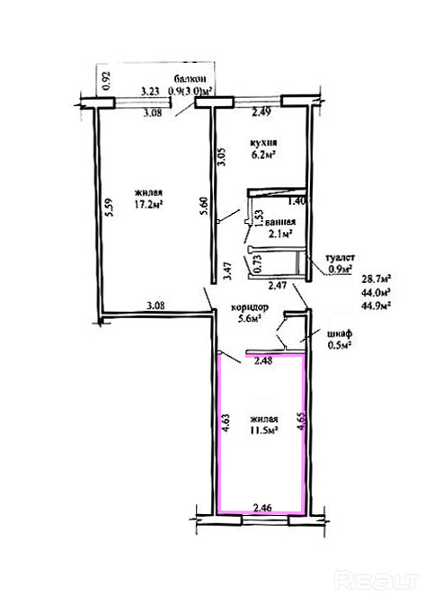 В тихом зеленом квартале Минска, продается доля в двухкомнатной квартире, в виде комнаты 11.5 м2, в пешей доступности от ст. метро Пушкинская!