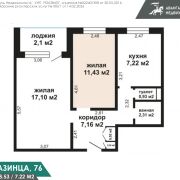 Общая площадь 47 кв.м., площадь комнаты 11,4 кв.м., кухня 7,2 кв.м.
