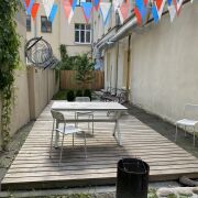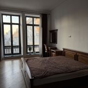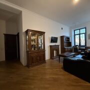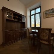 1/2 доли, доля не выделена. Отличный ремонт, пол паркет, подоконники гранит, деревянные стеклопакеты, закрытый двор, въезд с пульта, есть отдельный вход на чердак (можно выкупать), подвал, место для барбекю во дворе.
