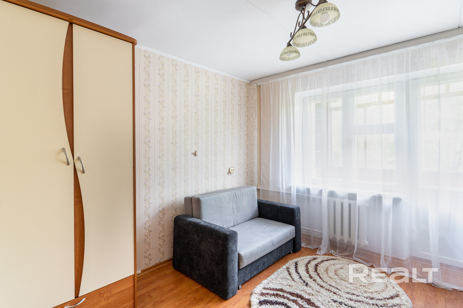 В комнате уютная, домашняя атмосфера! Сделан аккуратный ремонт, на полу ламинат. Есть небольшая, но вместительная  гардеробная. Установлен холодильник. Большие оконные проемы дают много дневного света! Окна выходят во двор  на восточную сторону, поэтому в квартире комфортно в любую пору года. Дом находиться в удалении от основных дорог, а значит, Вам не будет мешать постоянный шум машин.