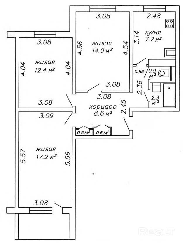 17.2 м²