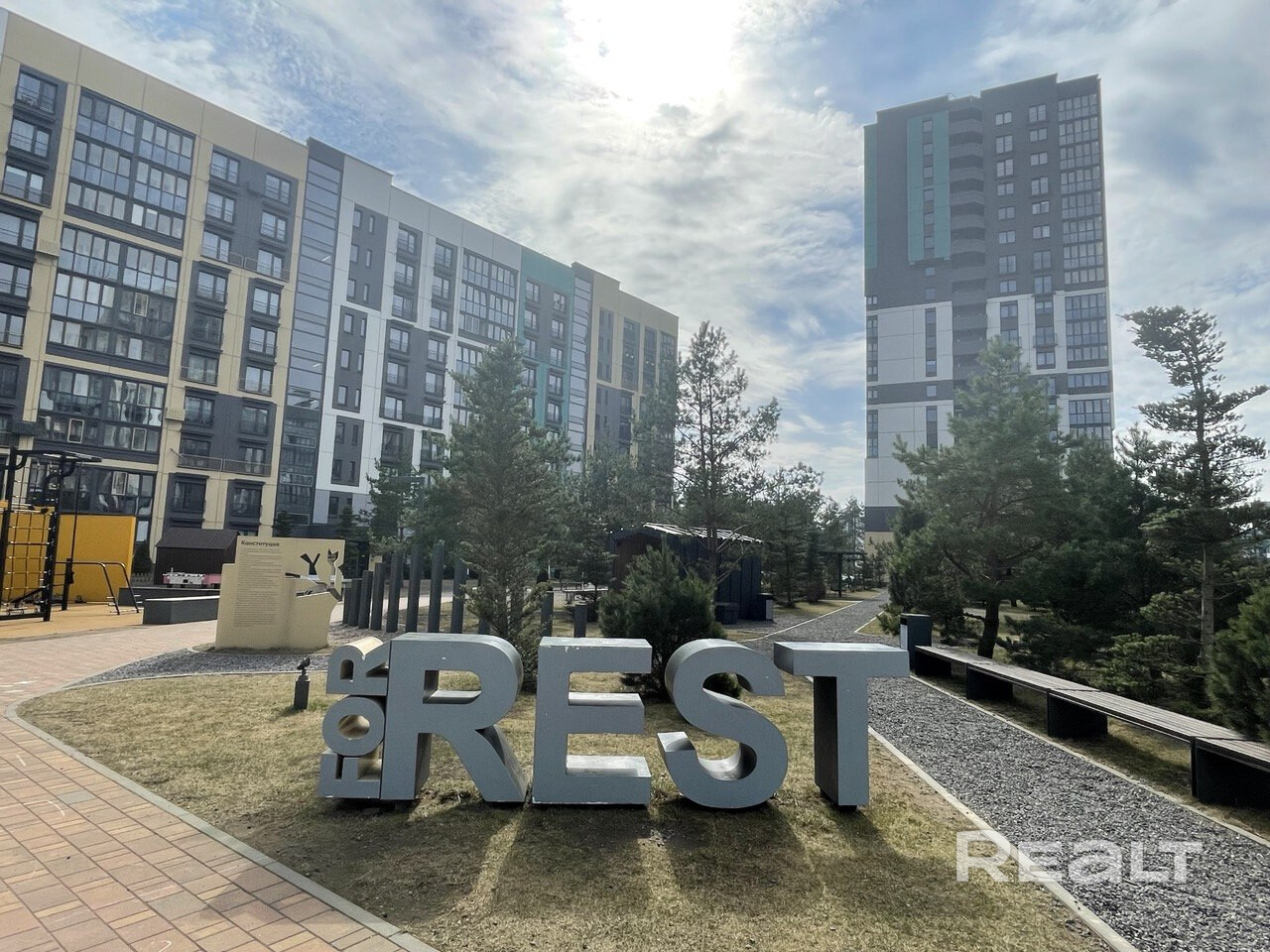 Второй комфортный этаж, бесшумный лифт, ухоженный подъезд. Дом расположен в самом озеленённом и тихом квартале Forrest, имеет благоустроенную дворовую территорию с оборудованными детскими и спортивными площадками, уютными зонами отдыха со множеством зелёных насаждений. Двор ограждён и закрыт для движения машин. За пределами дворовой территории предусмотрено много парковочных мест для автомобилей под шлагбаумом.