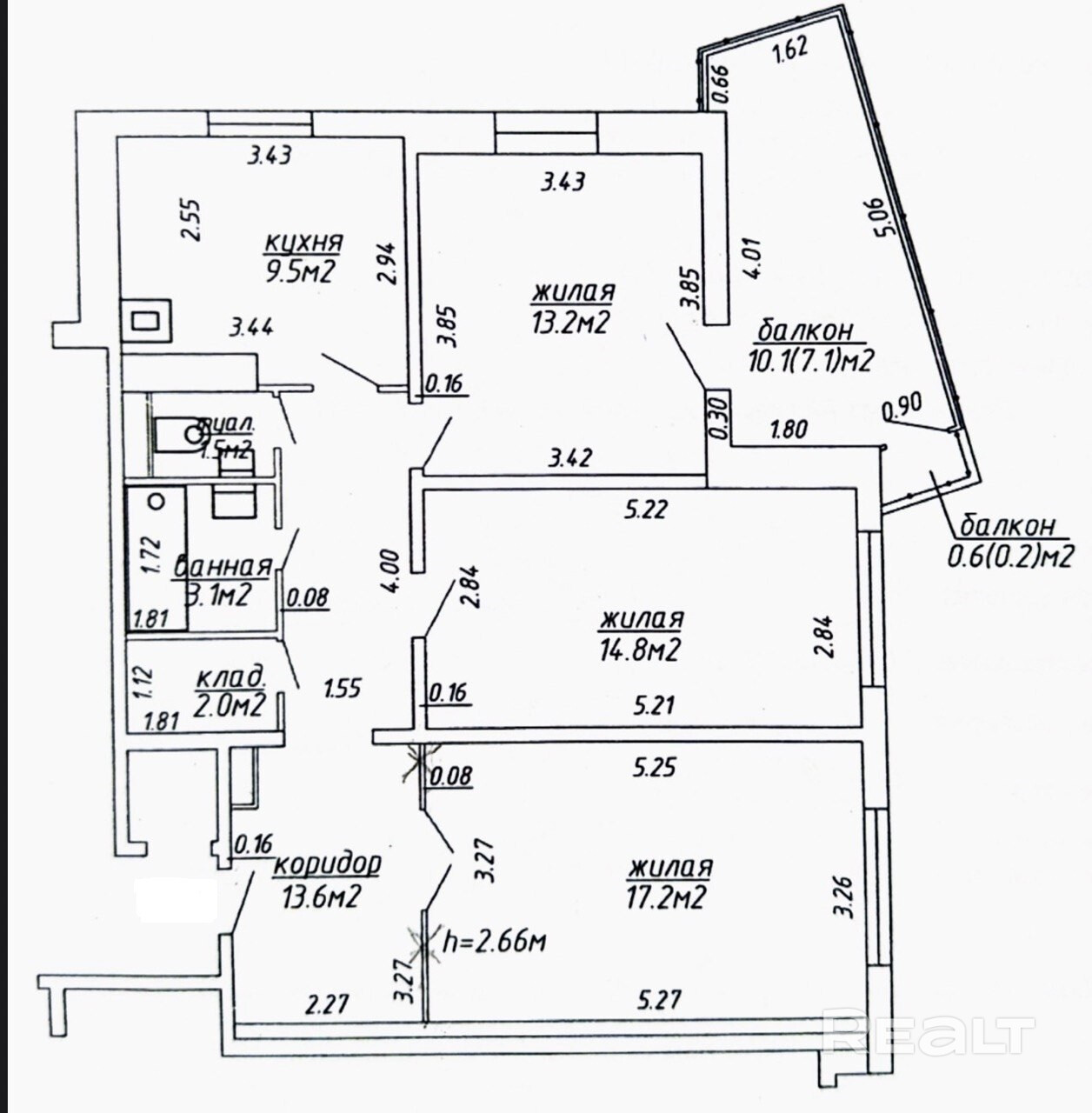 Продается 1/2 доля в трехкомнатной квартире по ул. Неманская, 35.