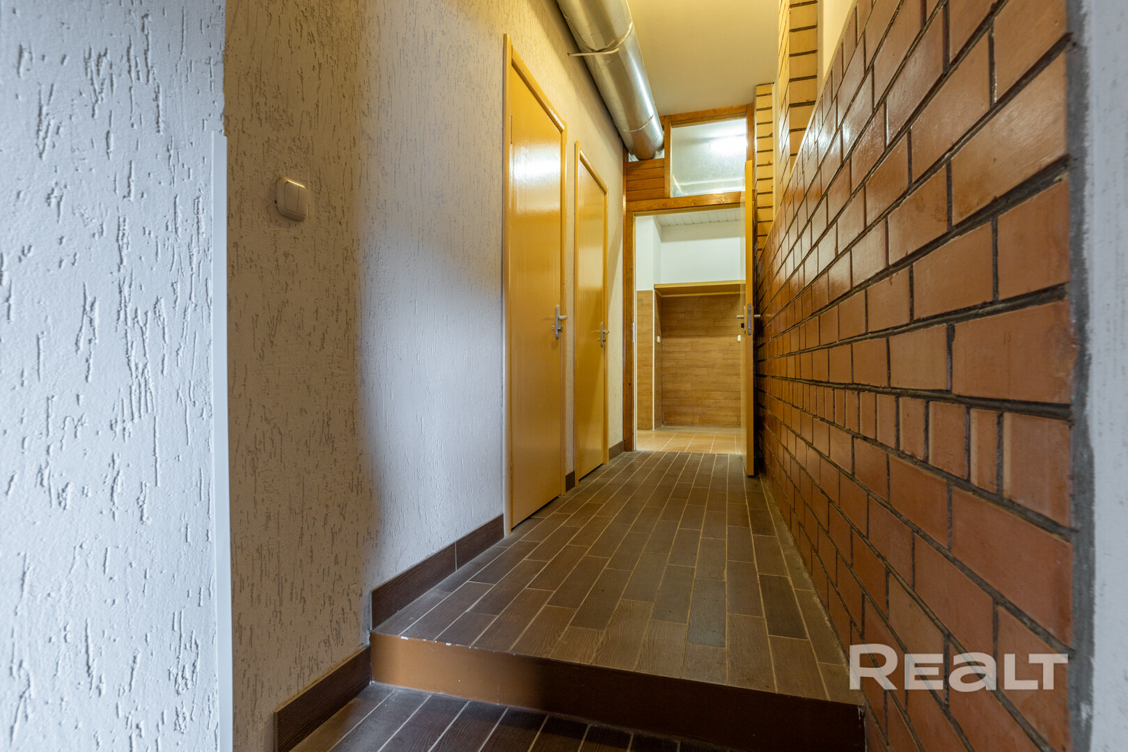 Цокольный этаж: 2 спортзала (76,0 м2, 47,5 м2), санузел, топочная, 5 хозяйственых помещений, бассейн.