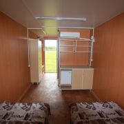 8 домиков для отдыха размер 2.51х5.94. (номера в домиках 2-х и 3-х местные) Туалетные модули - 7 кабинок , душевые кабины -2шт., умывальники, кухня самообслуживания , прачечная . Местная канализация с системой биоочистки. Центральный водопровод. Горячая вода постоянно.