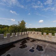 • Верхний этаж выполнен в стиле средневекового замка с открытыми террасами и видами на извилистые берега реки Птичь, до излучины реки - всего 50 метров.