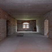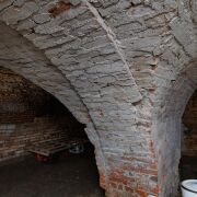 • Фундамент армированный, межэтажные перекрытия заменены на железобетон, толстые кирпичные стены усилены и восстановлены.