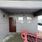 Вход в помещение оборудован с учетом требований безбарьерной среды. Вентфасад выполнен из японской фиброцементной плиты. Вывески с подсветкой, отдельная линия на каждую, выключатели расположены внутри помещения, в зону вывески выведен слаботочный кабель для интернет подключения интерактивного оборудования (экранов рекламы). Современное наружное освещение входа в помещение.