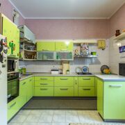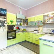Кухня на 1 этаже встроенная, оборудована газовой варочной поверхностью, встроенной электрической духовкой, посудомоечной машиной, двухкамерным холодильником.