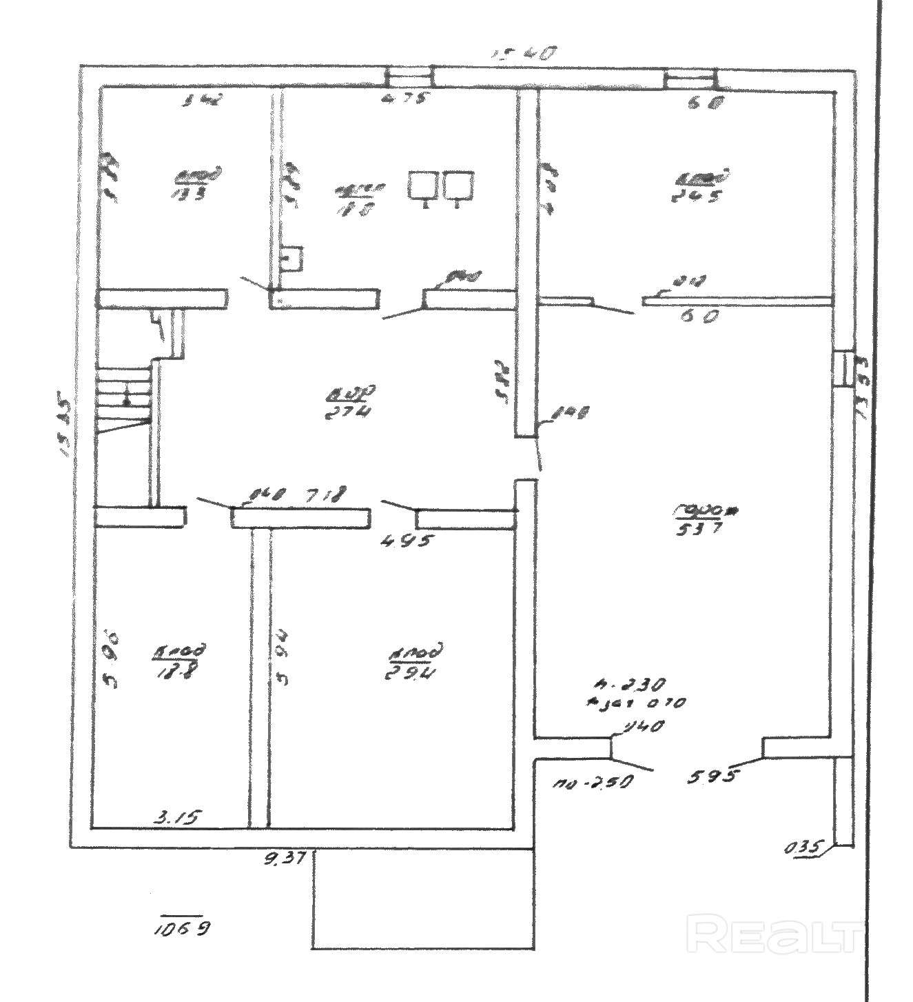 цоколь: гараж + пять отдельных помещений