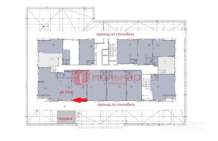 Продается помещение, торгового назначения, в ЖК "Минск Мир", по ул, Савицкого 39 общей площадью 48.6 м2(с учетом не примыкающей террасы)