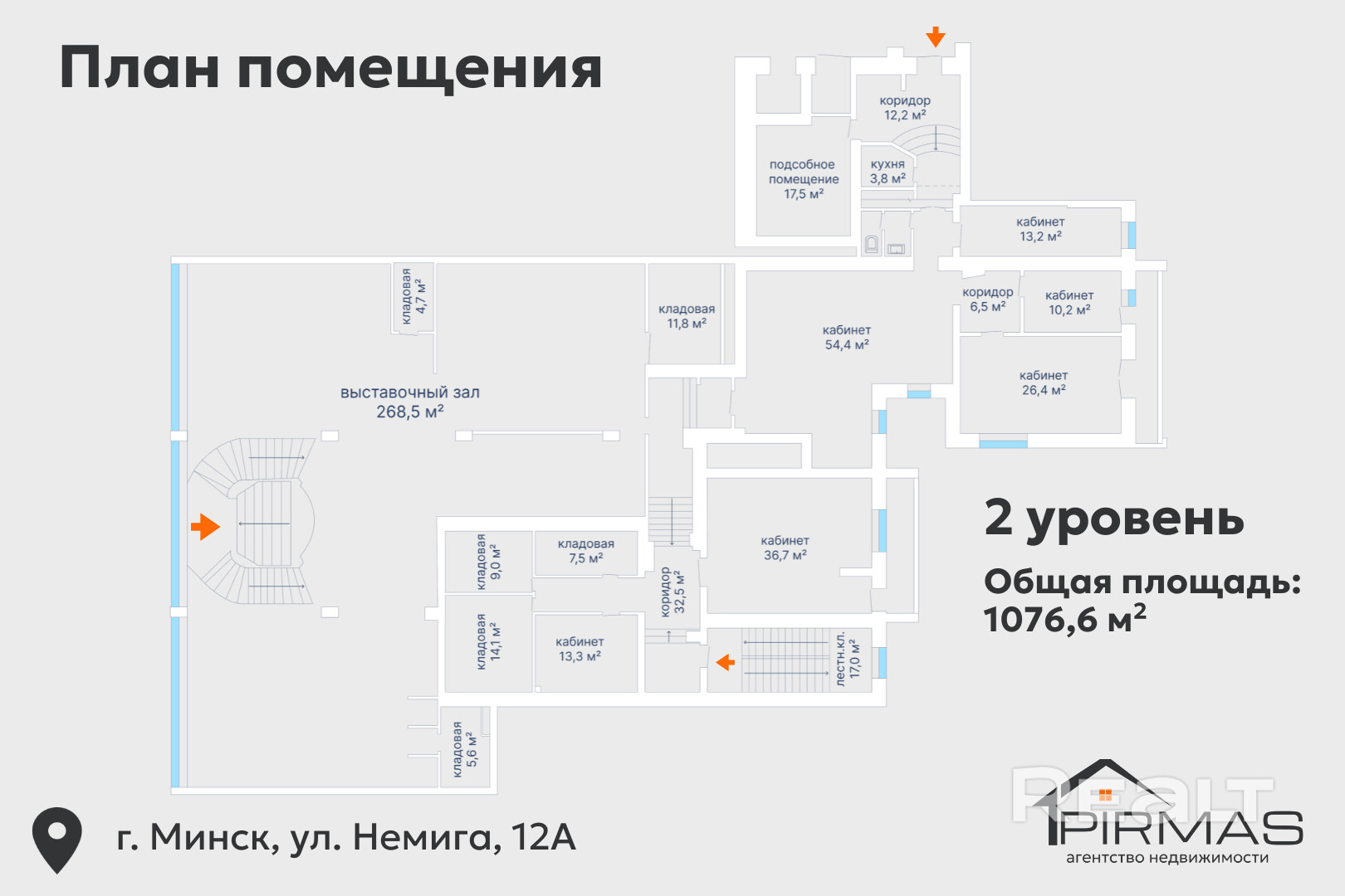 ✅ Административно-торговое помещение 1076,6 м² на Немиге, 12А — в центре Минска