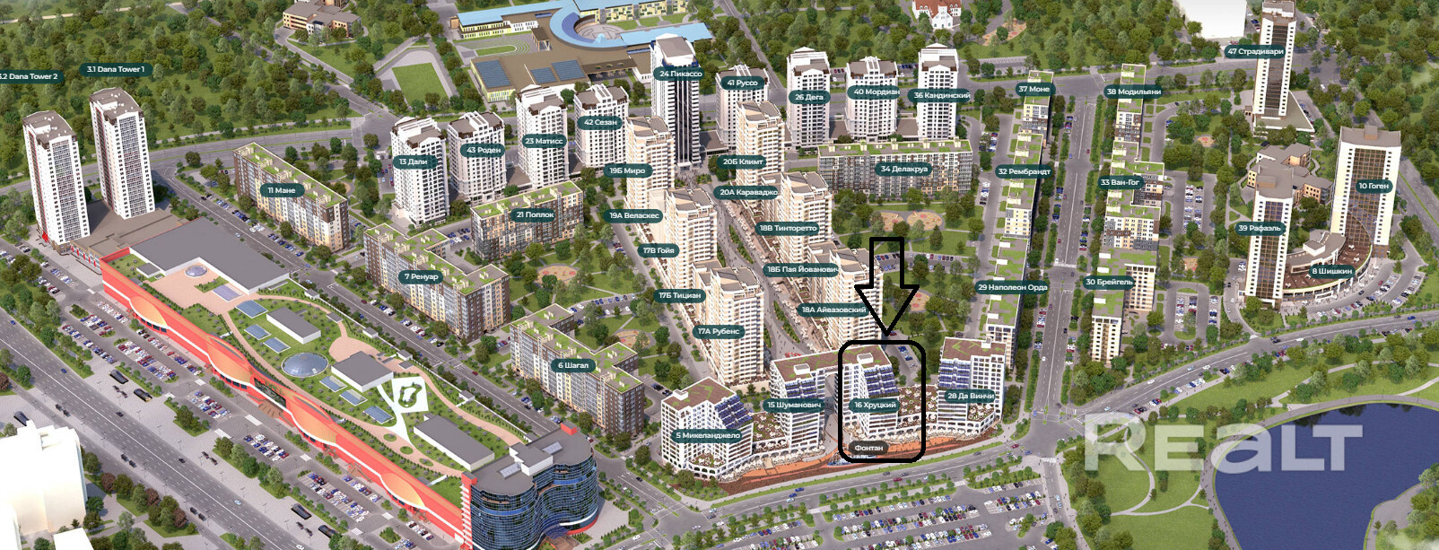 • ЖК «Маяк Минска» - престижный район VIP-класса, расположенный напротив национальной Библиотеки вдоль проспекта Независимости