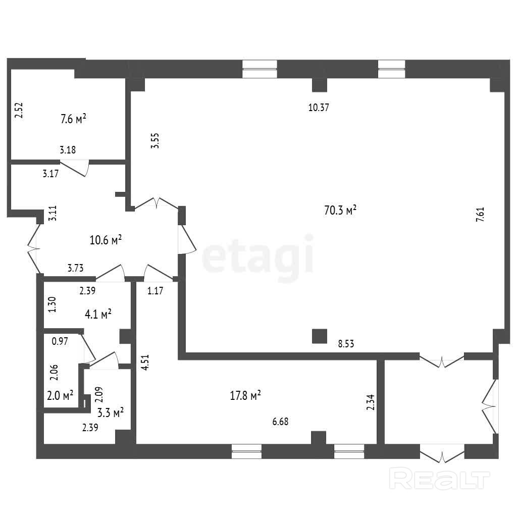 - санузел 3,3 м2, душевая 2,0 м2, гардеробная 4,1 м2 и коридор 10,6 м2.